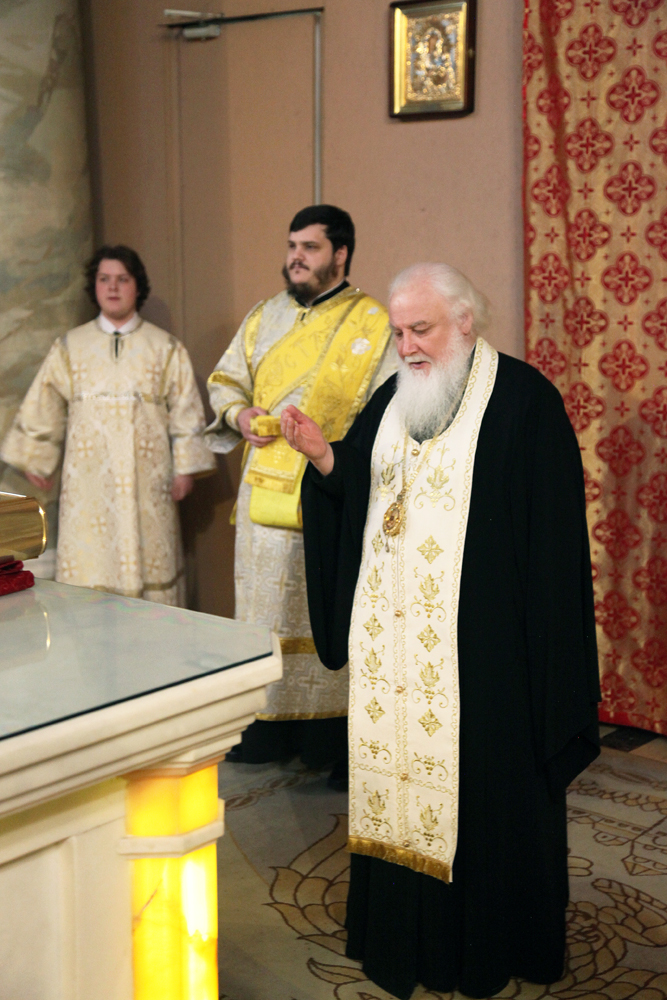 Его Высокопреосвященству сослужили протоиереи: Василий Бильчук, настоятель собора, Владимир Максимчук, ключарь собора; иереи: Сергий Гришанов, Виктор Архипкин; диаконы: Андрей Кантарюк и Олег Мальцев, клирики собора.