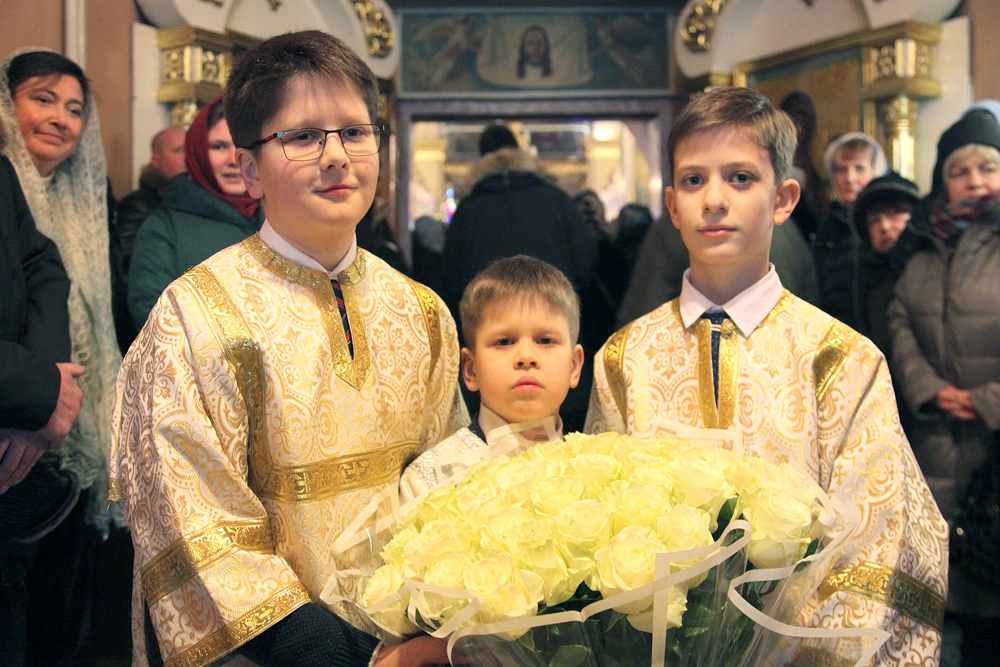 Его Высокопреосвященству сослужили протоиереи: Василий Бильчук, настоятель собора, Владимир Максимчук, ключарь собора, Алексий Носач; иереи: Сергий Гришанов, Александр Алешин; диаконы: Андрей Кантарюк и Олег Мальцев, клирики собора.