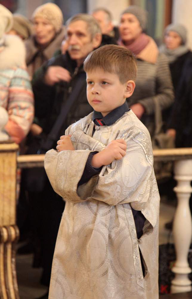 Его Высокопреосвященству сослужили протоиереи: Василий Бильчук, настоятель собора, Владимир Максимчук, ключарь собора, Алексий Носач; иерей Сергий Гришанов и диакон Олег Мальцев, клирики собора.