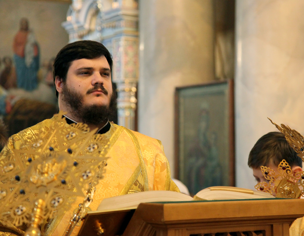 Его Высокопреосвященству сослужили протоиереи: Василий Бильчук, настоятель собора, Владимир Максимчук, ключарь собора, Алексий Носач; иереи: Сергий Гришанов, Виктор Архипкин, Александр Алешин; диаконы Андрей Кантарюк и Олег Мальцев, клирики собора.