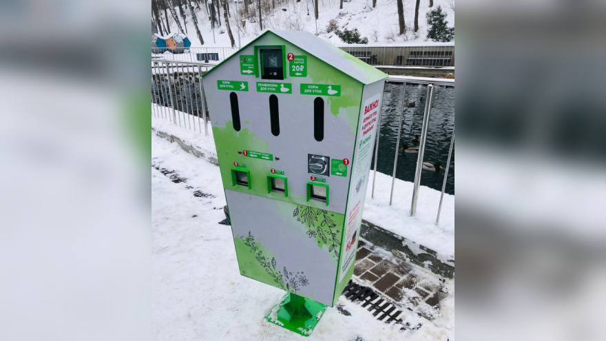 Аппарат с кормом для птиц и уток установили в Центральном парке Воронежа
