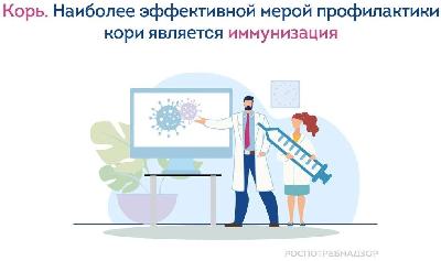 - высокой температурой (до 40,5 °C) - воспалением слизистых оболочек полости рта - воспалением верхних дыхательных путей - конъюнктивитом - пятнисто - папулёзной сыпью кожных покровов. При неблагоприятном течении заболевания возможны осложнения, связанные с работой центральной нервной системы, дыхательной системы и желудочно-кишечного тракта. Наиболее эффективной мерой профилактики кори конечно является иммунизация. В соответствии с постановлением Главного государственного санитарного врача, во всех субъектах Российской Федерации с 3 апреля начнется кампания по подчищающей вакцинации против кори. Постановление предусматривает иммунизацию трудовых мигрантов, а также тех, кто не привит против кори, не имеет сведений о прививках или не болел корью ранее. Эпидситуация по кори в Российской Федерации находится под контролем Службы. При выявлении случаев заболевания проводится комплекс противоэпидемических мер. Выявляются контактные лица, организуется иммунизация.