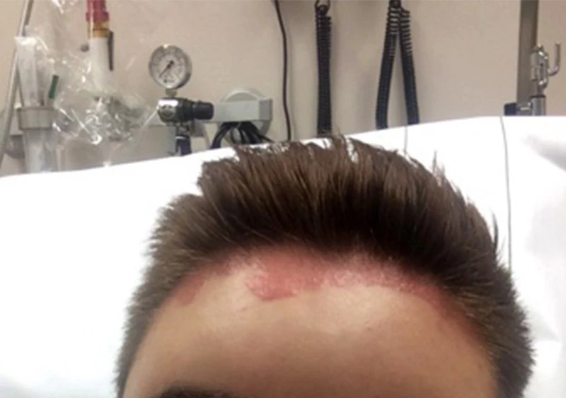 Вечером бригада скорой медпомощи доставила в больницу подростка в среднетяжёлом состоянии с резким отёком, зудом и сильным покраснением кожи головы.