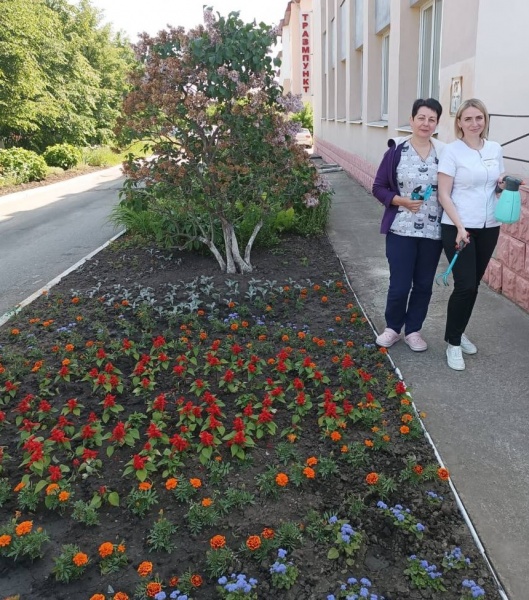 Необходимо регулярно поливать, рыхлить почву, освобождать от сорняков, чтобы красивые клумбы и газоны радовали глаз сотрудников и наших посетителей.