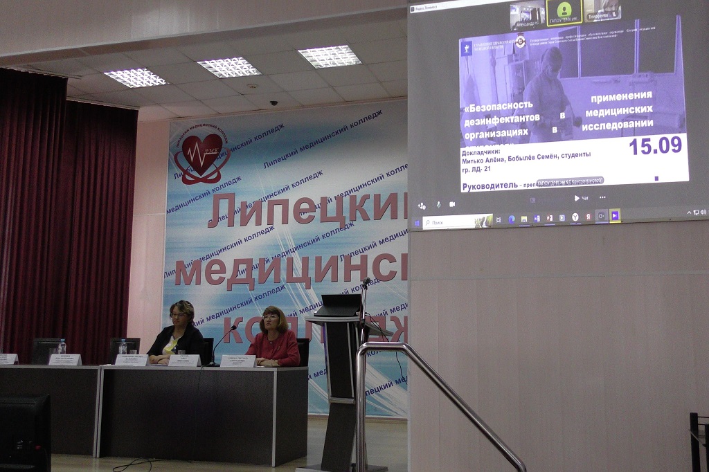 Студенты 2 курса специальности Лечебное дело ГАПОУ «ЕМК им К.С. Константиновой» Саркисян Кристина и Митько Алена выступили с результатами своей научно-практической работы: «Безопасность применения дезинфектантов в медицинских организациях в исследовании студентов, обучающиеся ГАПОУ «ЕМК им К.С. Константиновой».