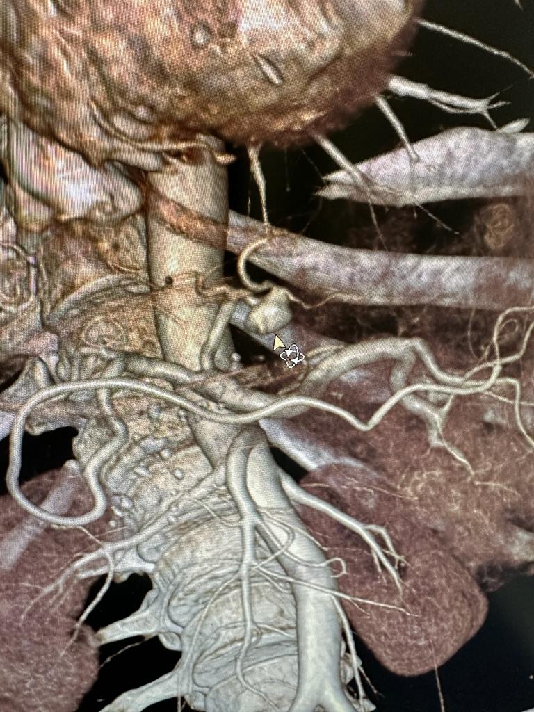 Как всегда неожиданно поступила пациентка 42 лет с внутренним кровотечением. Причину установили быстро — аневризма артериального сосуда, патологическое выпячивание сосудистой стенки, проще говоря «мешок». При определённых обстоятельствах разрыв его может привести к смерти.