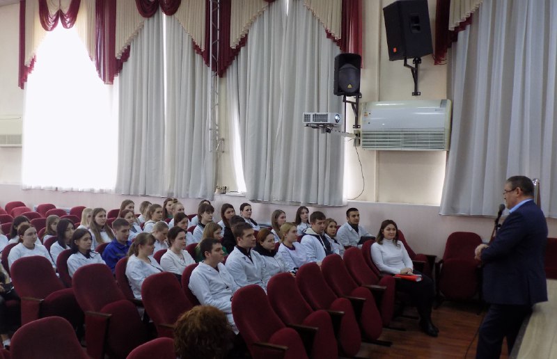 6 февраля в актовом зале липецкого медицинского колледжа прошла встреча 60 студентов выпускных курсов по специальности «Лечебное дело» с главным врачом центра скорой медицинской помощи и медицины катастроф Александром Ев