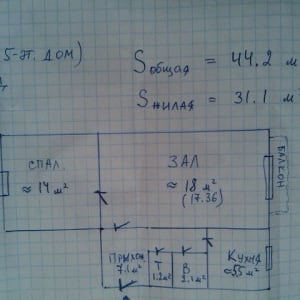 - Общая площадь: 44.2 м²