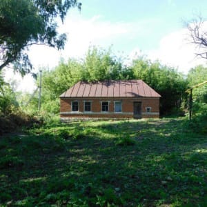 Кирпичный дом 34 кв.м с электричеством, газ проходит рядом с домом. Яблоневый сад. За домом каменный сарай. Площадь участка 32 сотки.